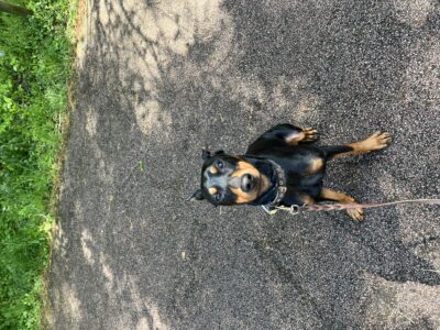 ムタ君は散歩中、自分の行きたい道と違う方へ進もうとすると拒否してきます。