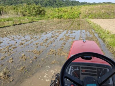 先日、社長は田んぼに行って代搔きをしてきたそうです。